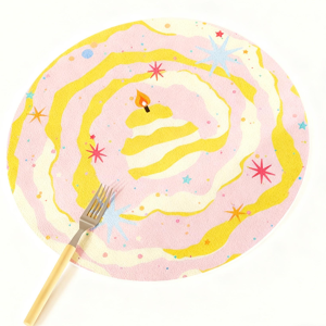 Swirl textures + cute motifs (cakes, apples, stars) match cute-style homes, birthday parties, afternoon tea setups, or kids’ dining tables.