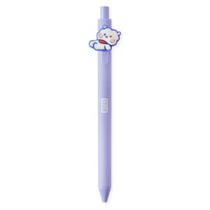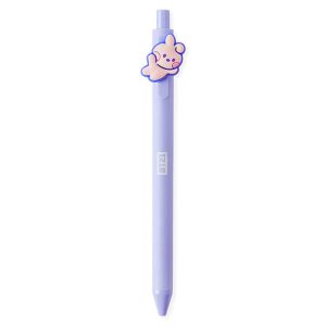 Each pen includes a WAC-certified food-grade silicone 3D character topper (soft, durable, non-toxic) attached to a smooth-writing black ink ballpoint pen (0.5mm tip). The lavender pen body is paired with the iconic BT21 logo, while the flexible silicone toppers capture each character’s unique pose (e.g., Tata’s heart shape, Cooky’s bunny wave) for authentic fan appeal. The pens write smoothly and are lightweight for comfortable daily use.