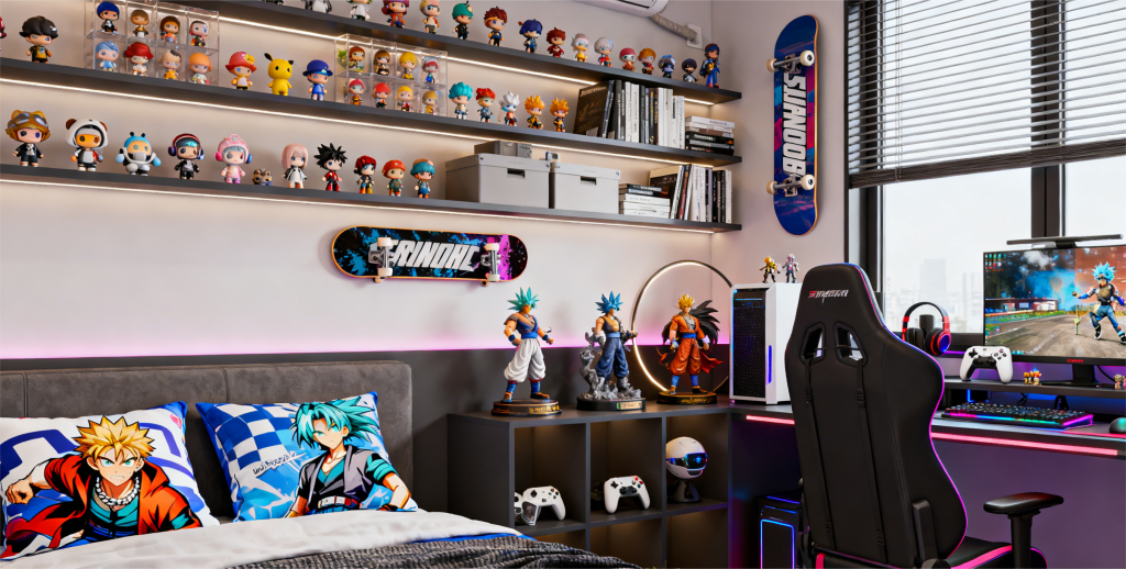 Walk into a Gen Z’s room, and you’ll likely step into a curated world of self-expression: shelves lined with mystery box figures, limited-edition anime statues beside the gaming setup, collaborative skate decks on the wall, and even a pillowcase printed with their favorite game character. What was once a niche hobby has evolved into a powerful form of identity, community, and emotional expression.